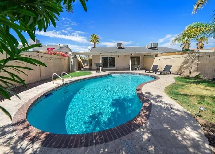 La casa de vacaciones está situada en el distrito Oeste de Las Vegas Strip a 25 minutos a pie de lugares de ocio como el Coliseo del Caesars Palace. Esta villa se encuentra a 2,1 km de atracciones naturales como el Jardín Botánico del Bellagio. Situada a unos 15 minutos en coche de la Capilla Nupcial Little White, la Villa Pool House Near Chinatown Vegas Wifl-Sleeps 9 es uno de los destinos favoritos de fieles y turistas.